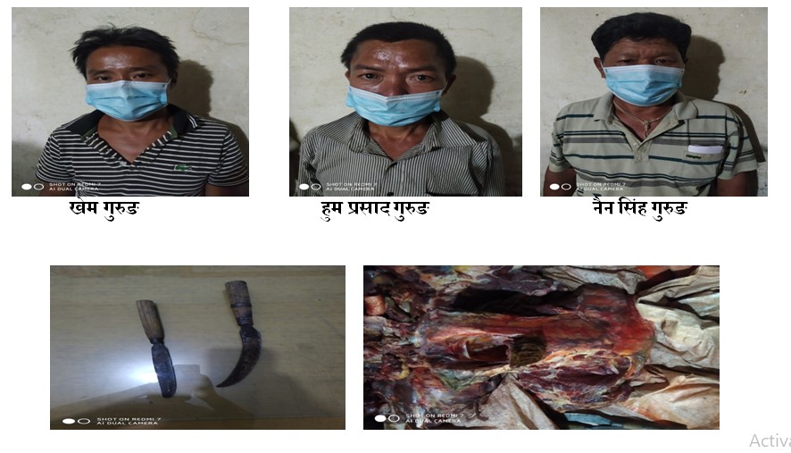 गोरु काटेको आरोपमा स्याङ्जा प्रहरीले तीनजालाई पक्राउ गरेको छ । भदौ २० गते भीरकोट नगरपालिका–८ दाढुकफेदीस्थित जिउँदो गोरुको मासाु खाने गरि गोरु काटेर भागवण्डा लगाउदै