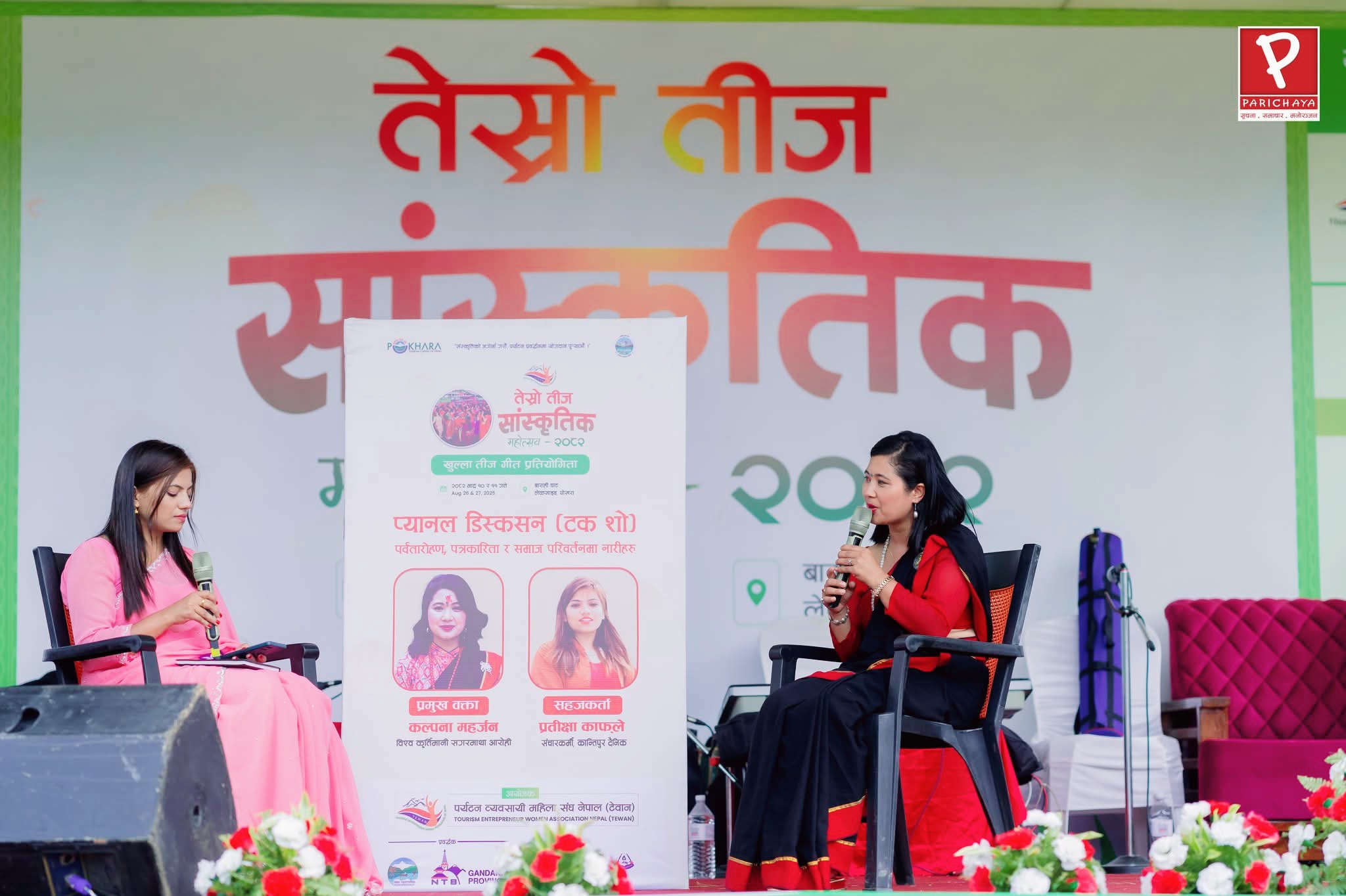 पर्यटन व्यवसायी महिला संघ नेपाल (टेवान) को आयोजनामा मंगलबारदेखि पोखराको लेकसाइडस्थित बाराहीघाट चौरमा ‘तेस्रो तीज सांस्कृतिक महोत्सव–२०८२’ सुरु भएको छ । हरितालिका तीजको अवसरमा आयोजित