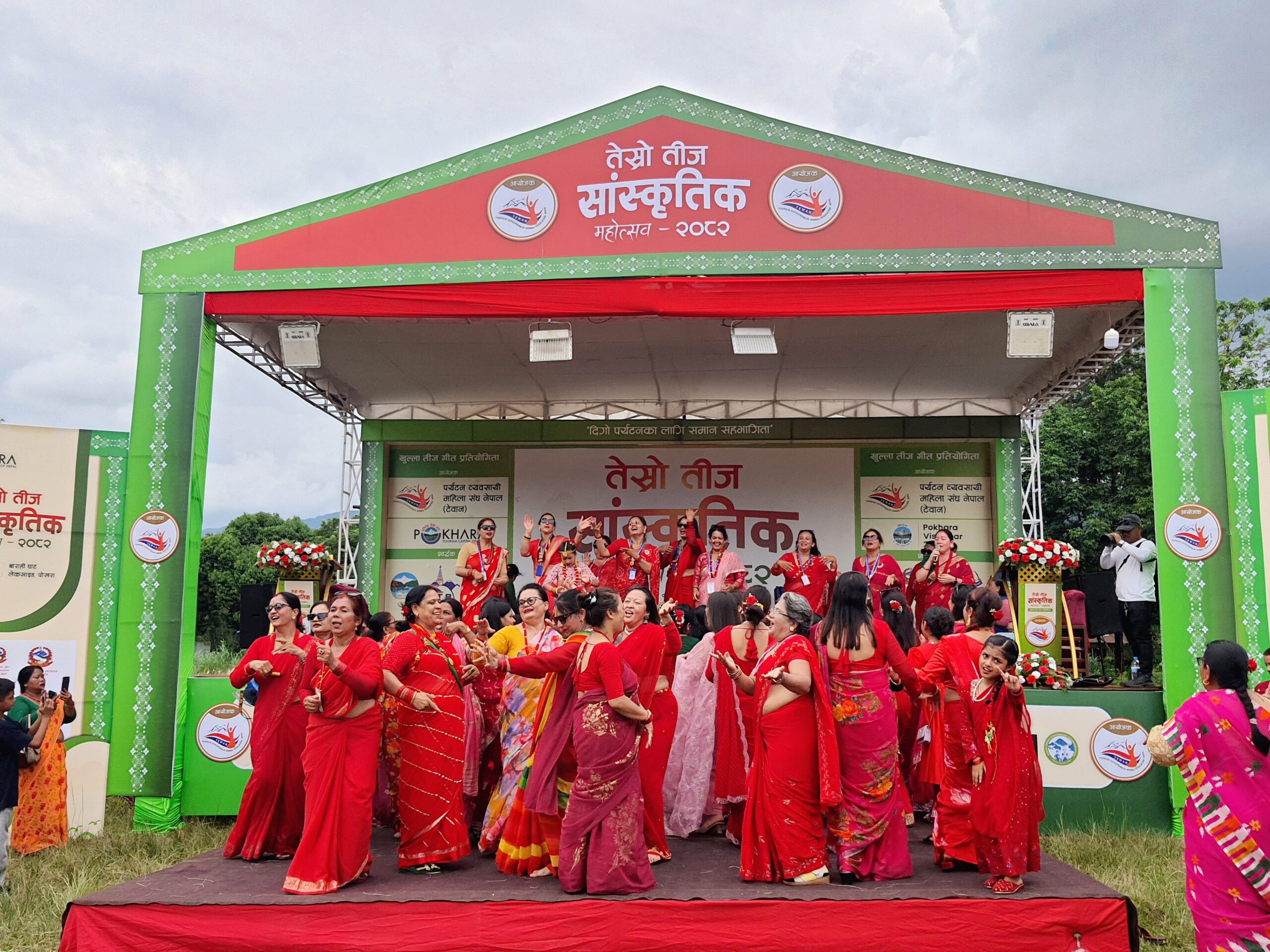 पर्यटन व्यवसायी महिला संघ नेपाल (टेवान) को आयोजनामा मंगलबारदेखि पोखराको लेकसाइडस्थित बाराहीघाट चौरमा ‘तेस्रो तीज सांस्कृतिक महोत्सव–२०८२’ सुरु भएको छ । हरितालिका तीजको अवसरमा आयोजित