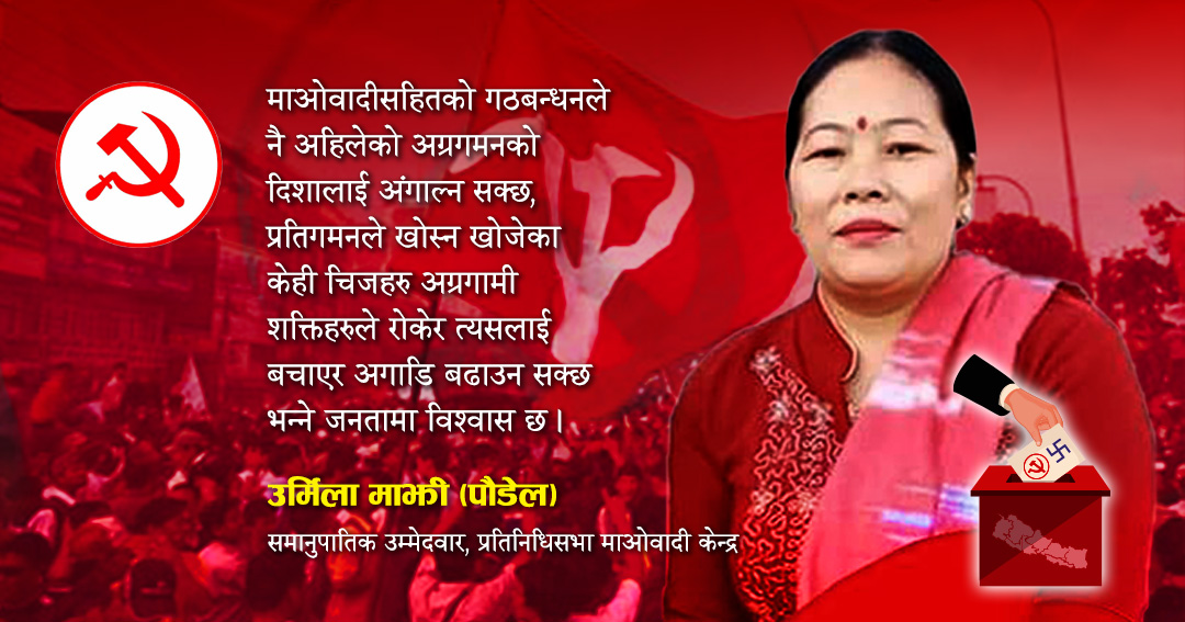 लमजुङ जिल्ला दोर्दी गाउँपालिका–२ की स्थायी बासिन्दा हुन उर्मिला माझी ‘पौडेल’ । काभ्रेको विकट डाँडापारी क्षेत्रको डाँडागाउँ गाविस हाल खानीखोला गाउँपालिकाको जगथलीमा माझी समुदायको सामान्य